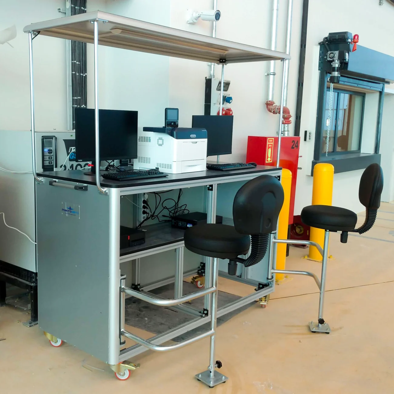 MAKRO AERO Work Tables, PC Stands and Document Holders transform any area in the hangar into office space where effective work can be generated in cooperation with team members. All equipment is equipped with castor wheels for easy mobility and the castor wheels are equipped with steering locks and brakes to allow for repositioning at any desired location. Work Tables, PC Stands and Document Holders are customized according to customer requests.